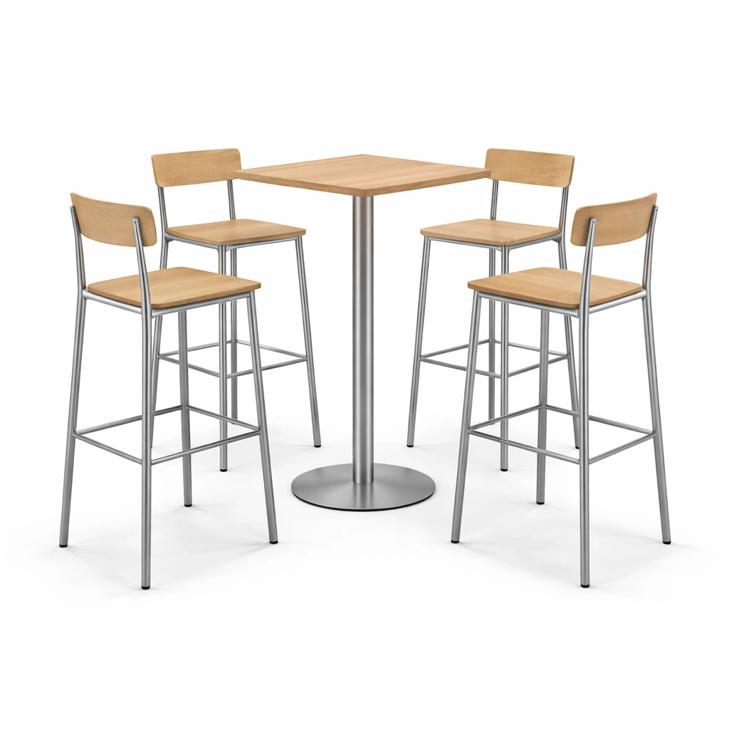 Bar-Set Quadratisch Metall Holz Hellbraun Tisch Barhocker